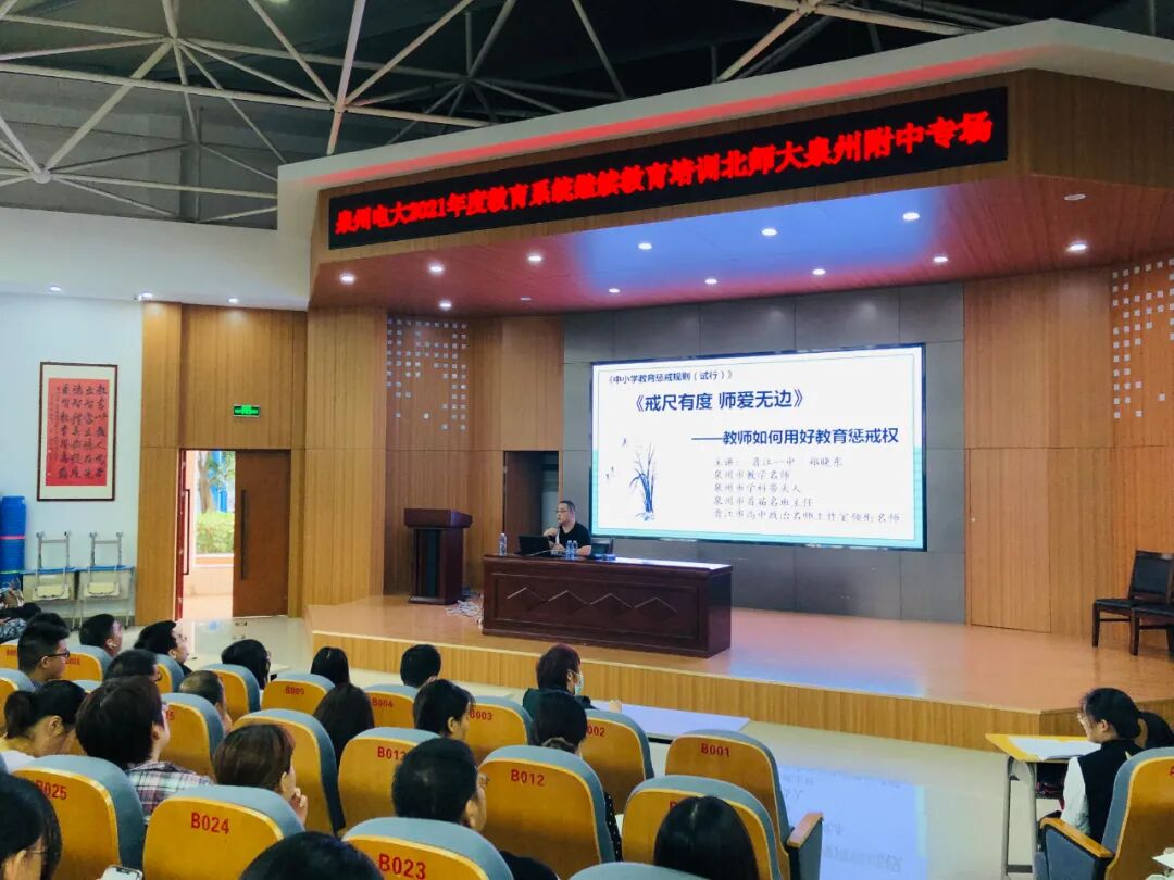 此次培训采用“线上+线下+异地培训”模式进行。线上培训依托我校“泉州市终身教育大数据平台”开展,线下面授课程,既有一线名师分享中小学优秀中层管理者的实践经验,又有教育专家丰富的理论内涵,课堂纷纭,干货满满。异地培训环节,我们选择赴集美大学师范学院,依托当地优质培训资源,以研讨交流、名校考察等形式深入开展活动。